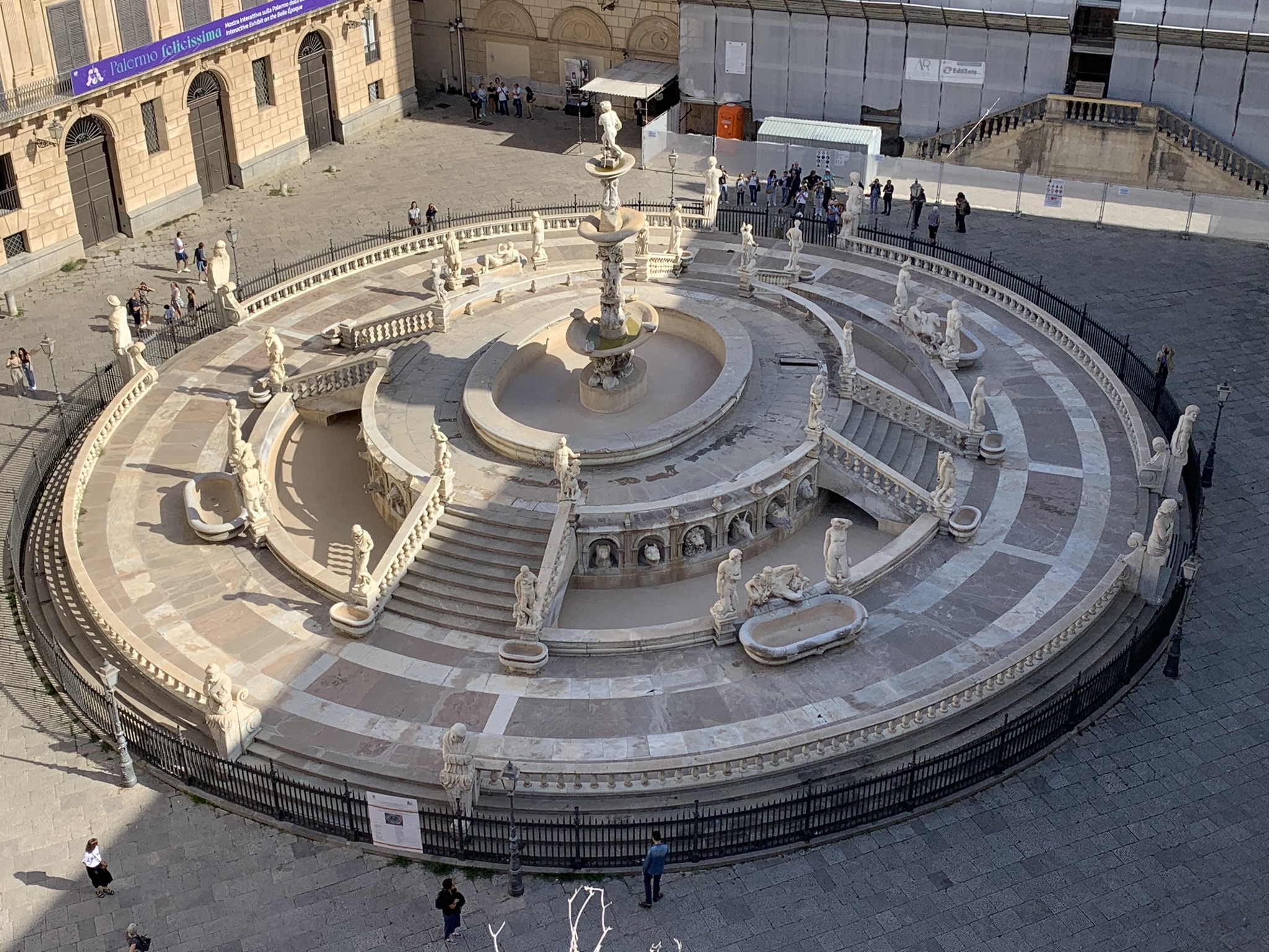 There are four basins in the plaza. Each basin represents each of the ancient rivers that ran through Palermo.